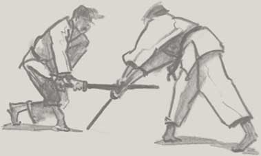 wird das kenjutsu (realistischer Schwertkampf) gelehrt. Die Übenden